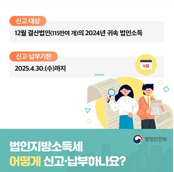 매년 4월은 법인사업자라면 반드시 챙겨야 할 시기입니다. 바로 법인지방소득세 신고기간이기 때문인데요.