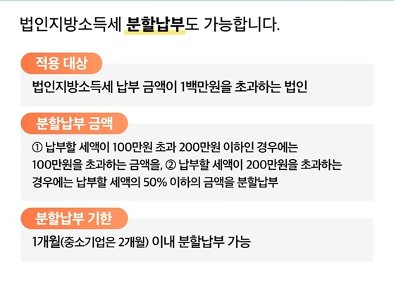 - 200만 원 초과: 세액의 최대 50%까지 분할납부