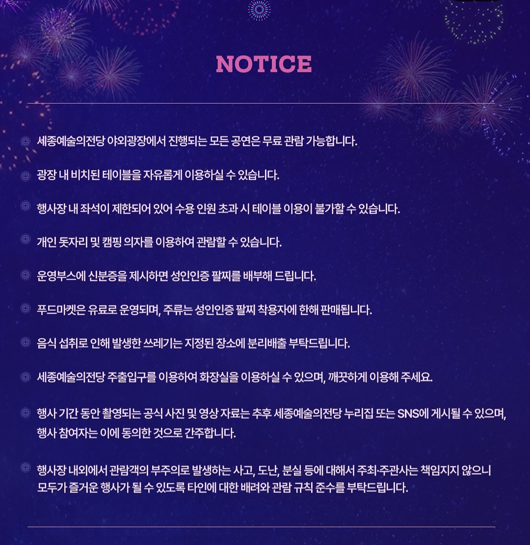 - 입장: 무료 (개인 돗자리, 의자 지참 가능)